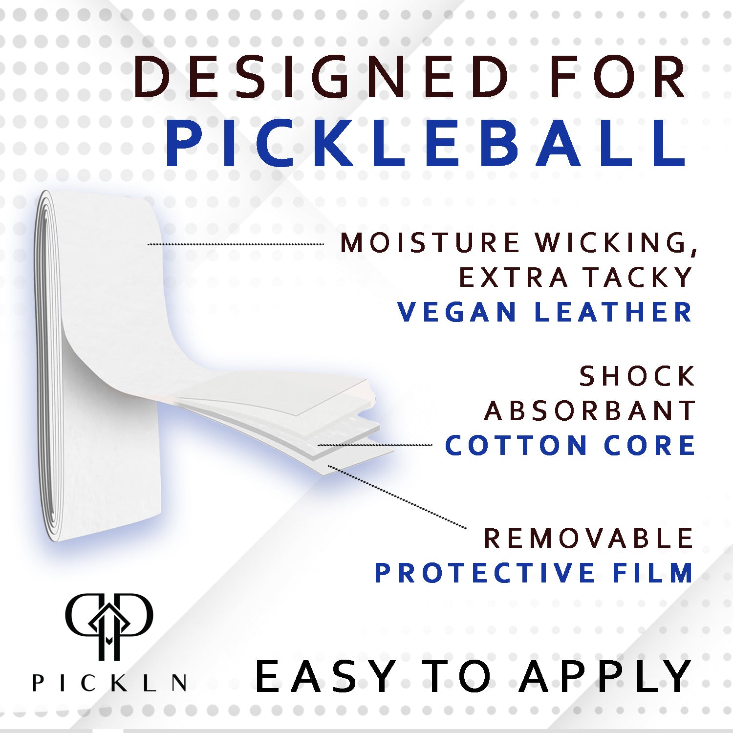 - [TACKY FEEL & MOISTURE WICKING] Maintain a comfortable grip for your pickleball paddle & prevent any slipping from sweat thanks to the enhanced feel & moisture absorbing nature of Pickln paddle grip wraps. Extra layer & soft feel reduces vibrations. Comparable to Yonex Super Grap and Joola Grips